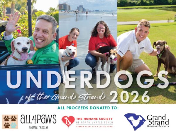 We could not be more thrilled with this years 2026 Underdogs of The Grand Strand calendar. Together with amazing local businesses, celebrities, officials, the rescues, and tourist sites we feature longer to adopt rescue dogs from All4Paws, The Humane Society of North Myrtle Beach, and Grand Strand Humane Society.